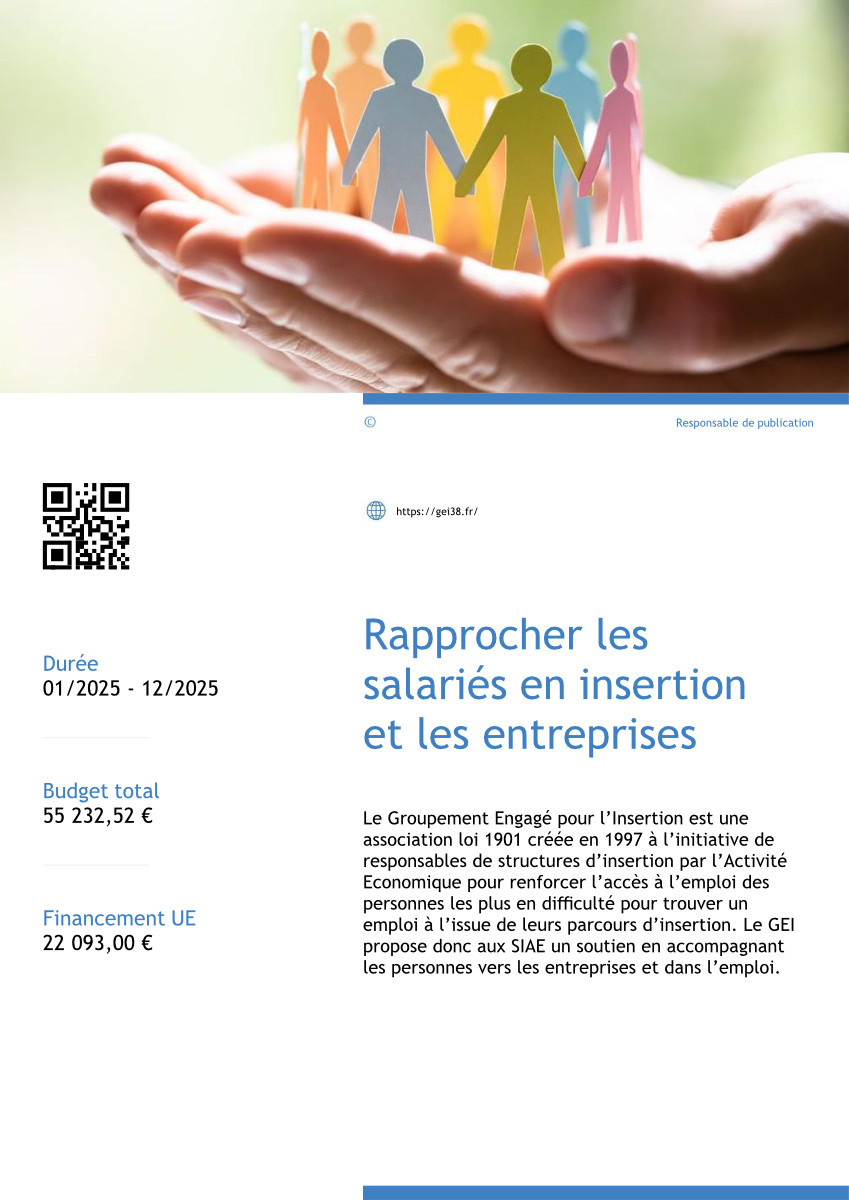 Le GEI, association loi 1901 a été créée en 1997 à l’initiative de responsables de structures d’insertion par l’activité économique pour renforcer l’accès à l’emploi des personnes les plus en difficulté pour trouver un emploi à l’issue de leur parcours d’insertion.